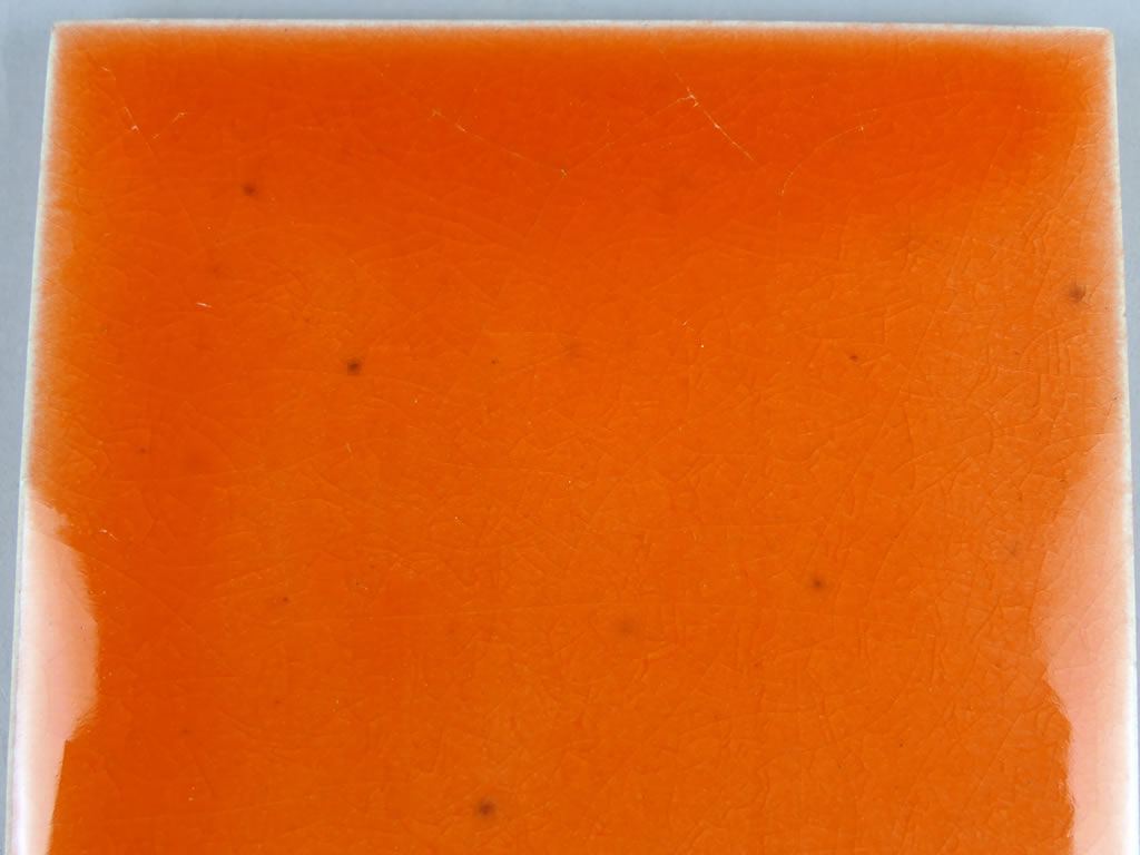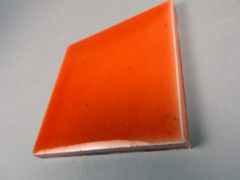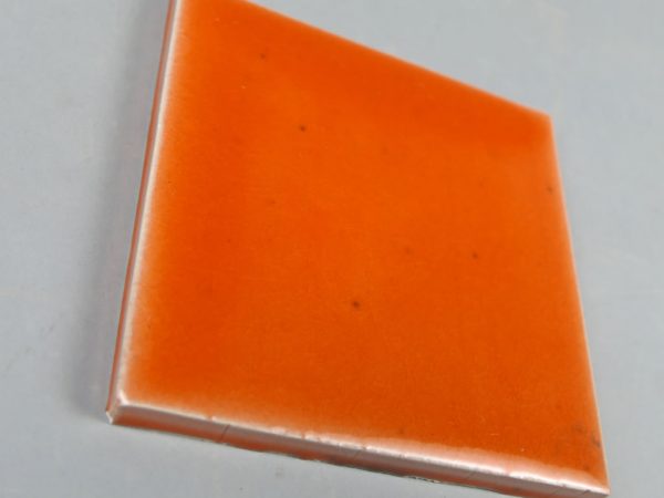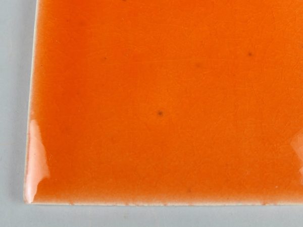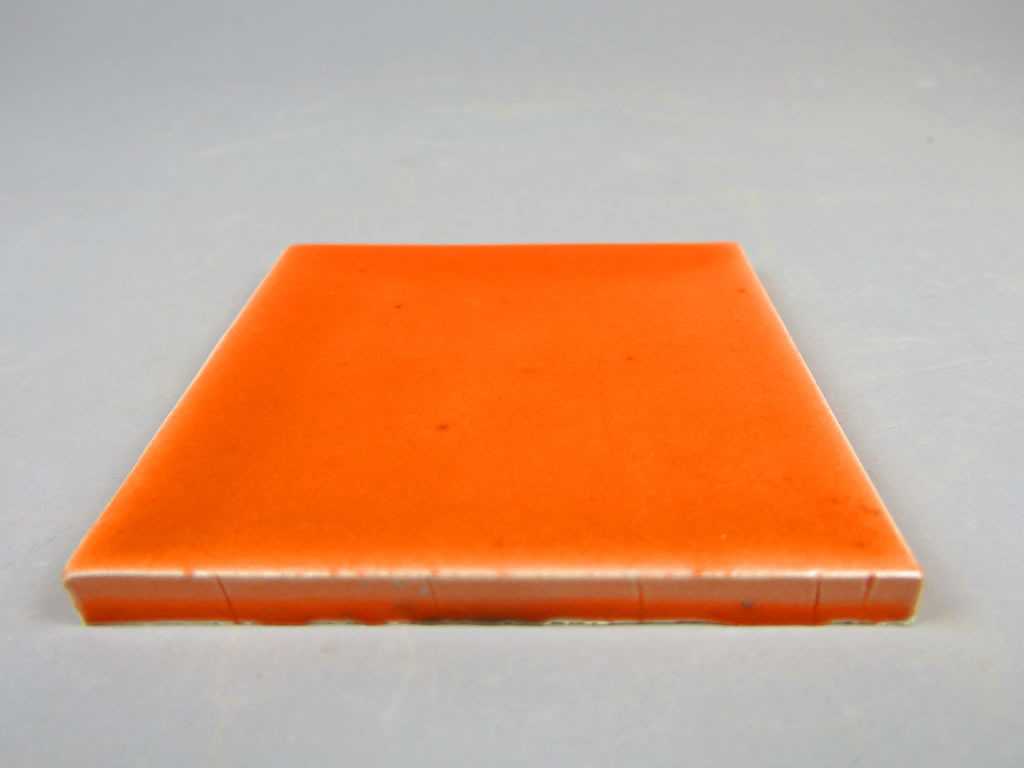 Azulejo de cerámica hecho a mano en barro SuperBlanco esmaltado con esmalte cristal color naranja. Los azulejos se pueden esmaltar con cualquier color en brillo o en mate de la paleta RAL K7 o D2. Consúltenos »