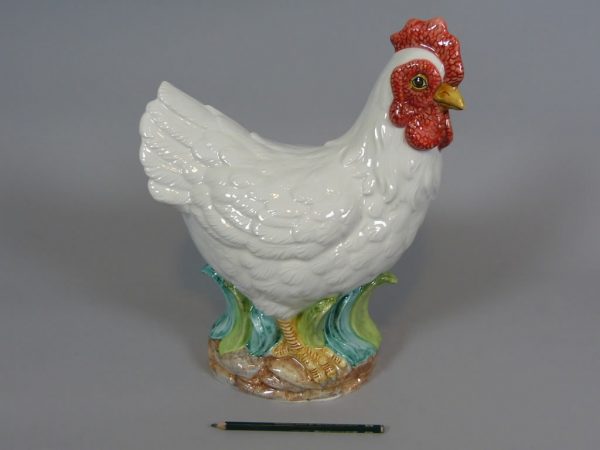 Gallina de cerámica blanca pintada a mano con mucho cuidado dando detalles como la cresta en color rojo, que es bien sabido en la cerámica es muy difícil de conseguir. La pieza es original, ya que se modelo en mi taller y se conservan los originales. Consúltenos »
