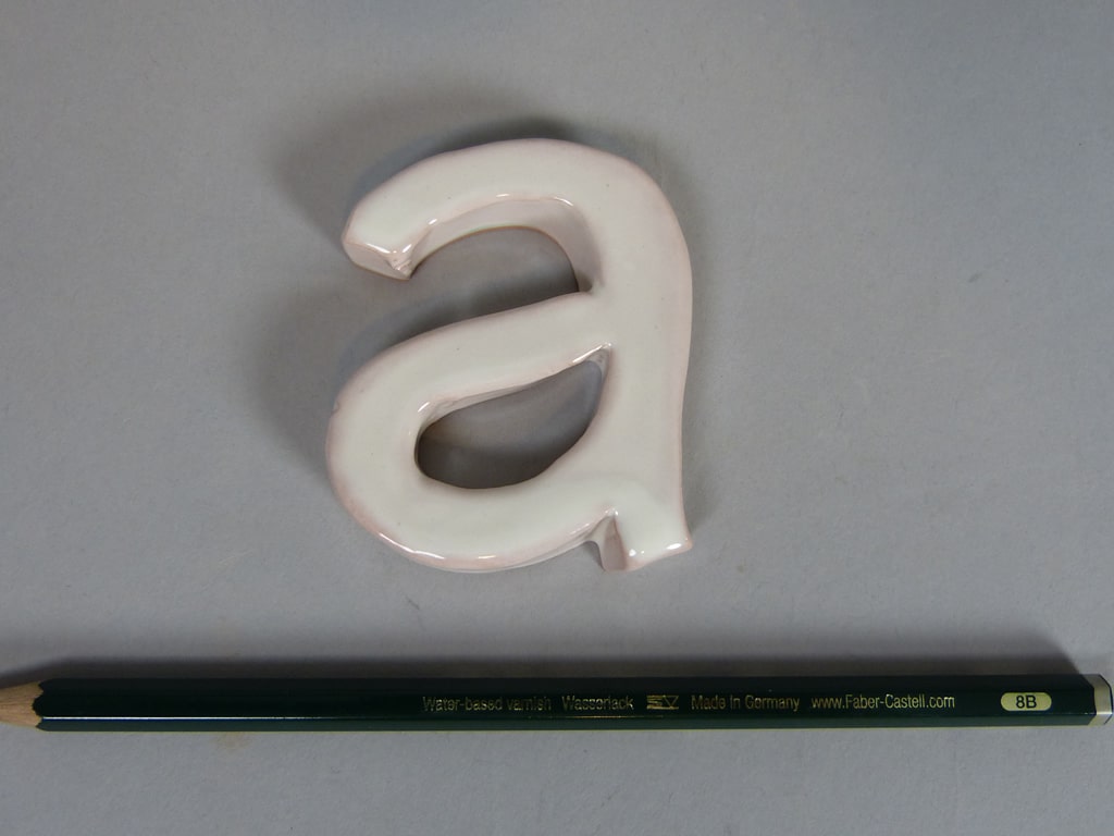 Letra de cerámica tipografía Arial Minúscula, esmaltadas en cualquier color y textura, en esta ocasión las letras están esmaltadas en color blanco roto. Hacemos cualquier color, diseño, dibujo, logotipo o tipo de letra que el cliente proponga. Consúltenos »