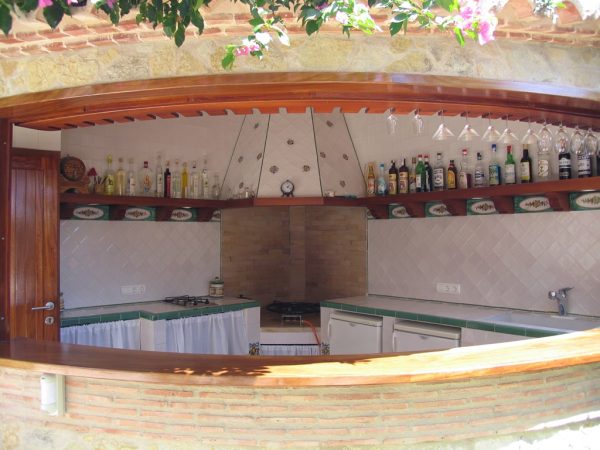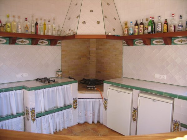 Paellero de cerámica en el jardín de la casa, se buscó un ángulo para la colocación de este paellero de piedra y caravista de barro cocido, la puerta y el banco son de madera de Iroco que soporta mejor las inclemencias del tiempo, la barra circular tiene ventanas las cuales se cierran en invierno. En el interior de este paellero se alicató con azulejos de 10 x 10 cm. Rústicos blanco roto, la requisa de manera está soportada por canets que entre ellos y a medida colocamos unos a tu lejos de 30 x 15 cm. Integrado con verde cobre y con un óvalo reservado para una flor con hojas, la campana, del tres lados, se alicató con azulejos de 10 × 10 criados con alguna flor, la colocación de estos azulejos se hizo en rombo. Todos los remates del banco se alicatado con ángulos esmaltados en verde Claur, y la separación de cada una de las covetas se alicatado también con azulejos de 10 x 10cm, con una pequeña guirnalda de naranjas y limones. Consúltenos »