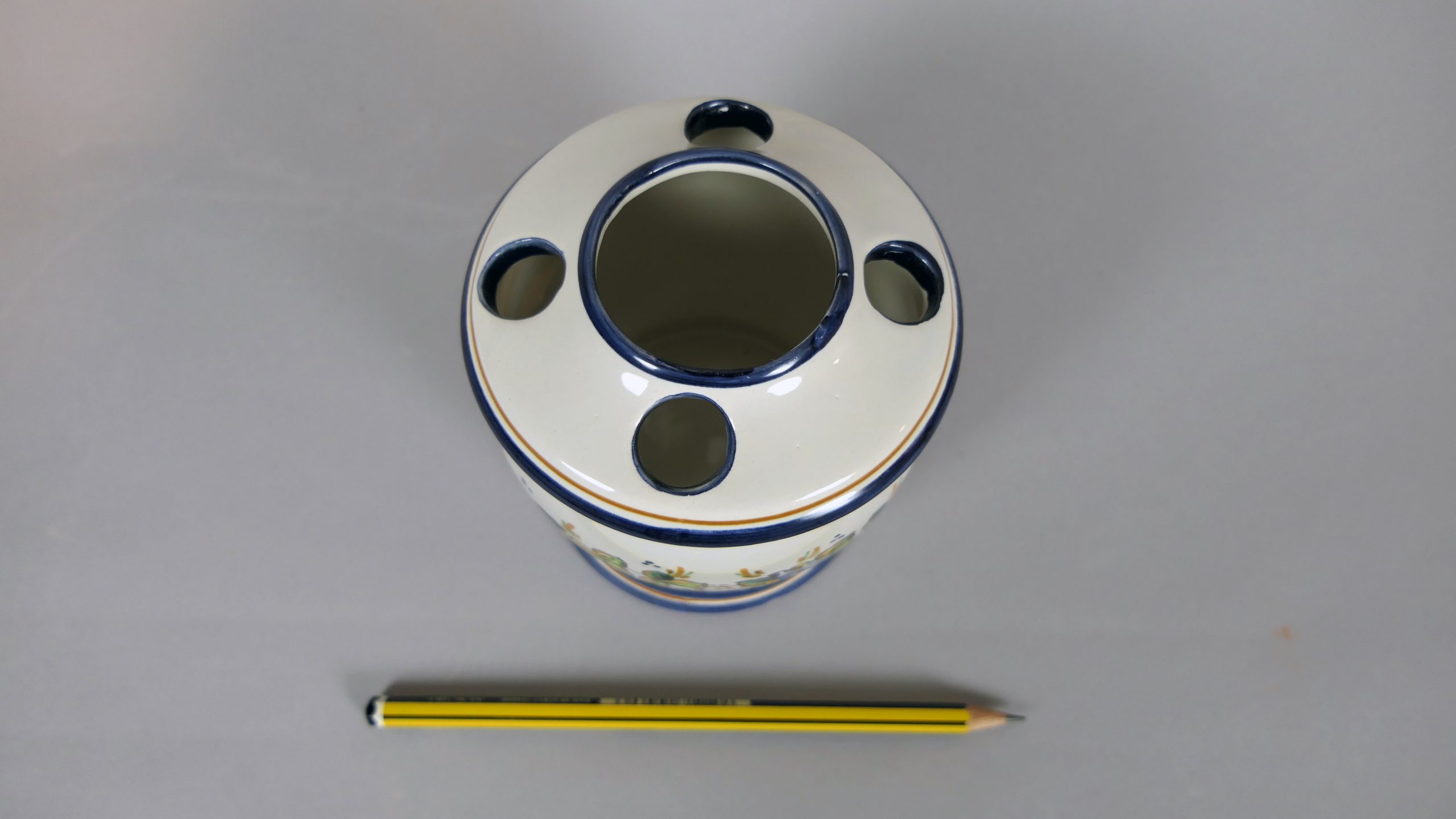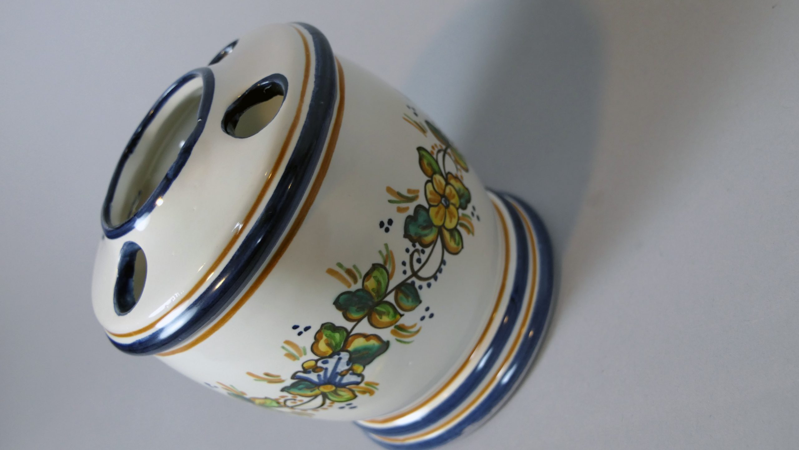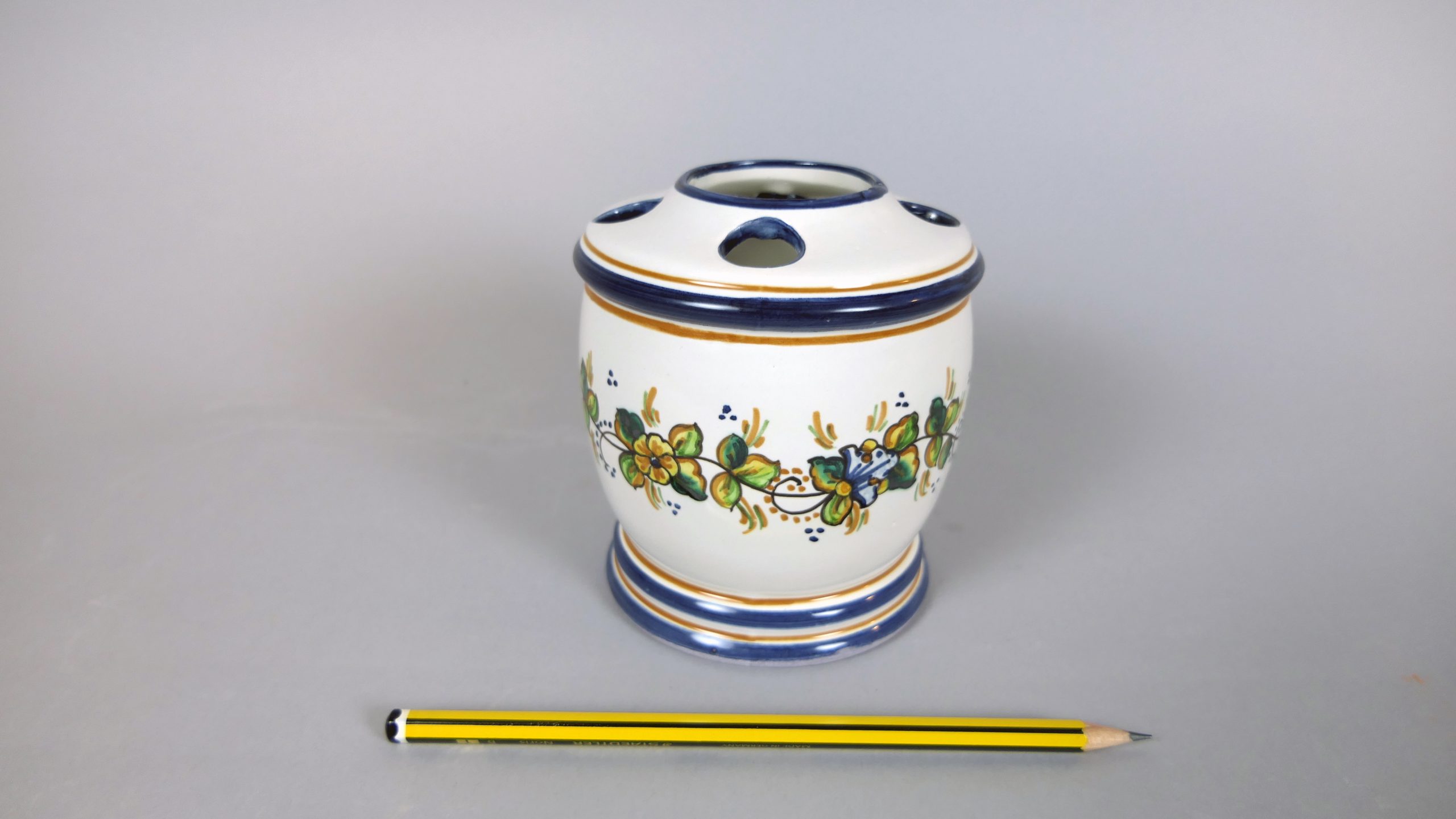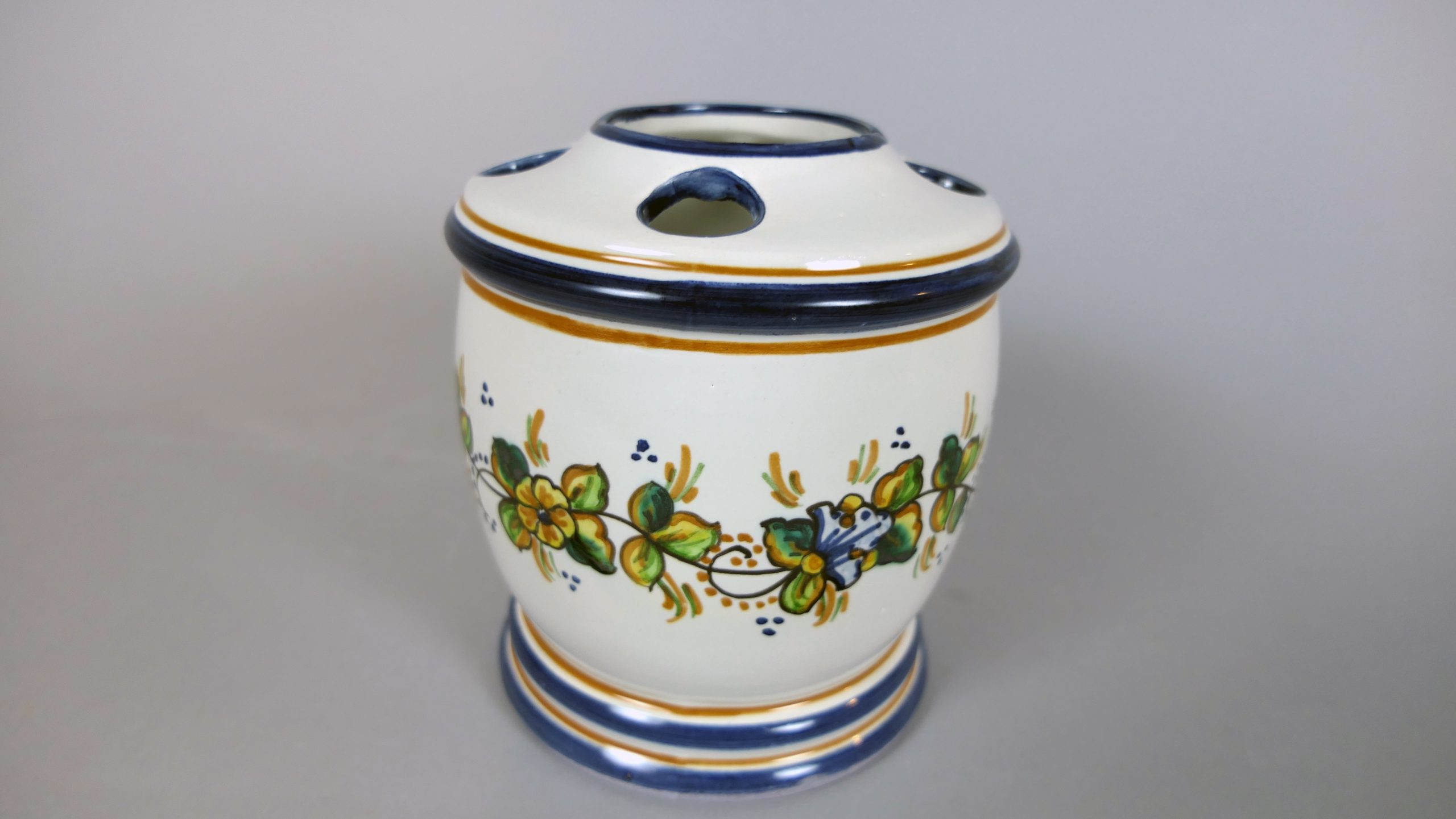Porta cepillos redondo, decorado con flores.
