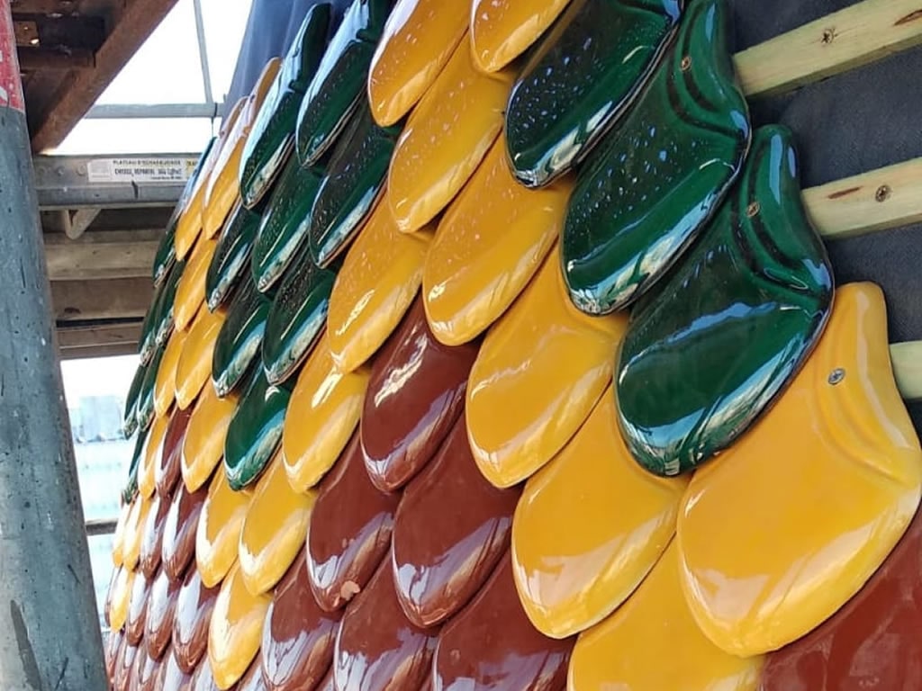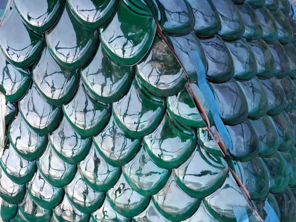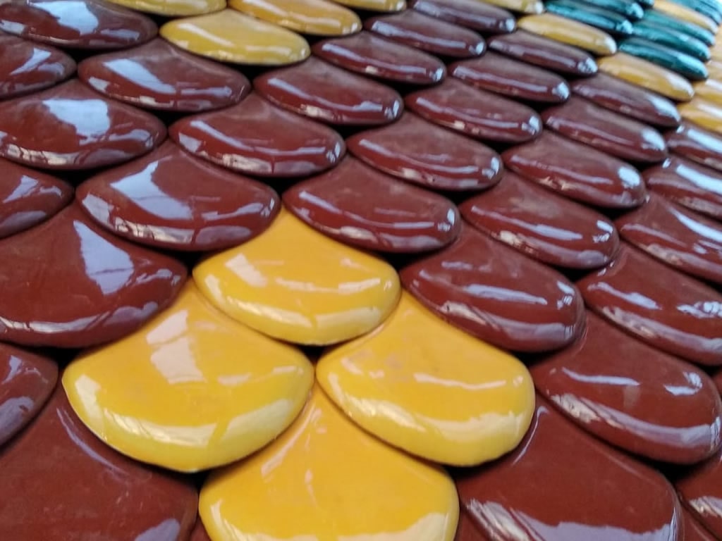 Teja de Cerámica en forma de lagrima. Realizamos en cerámica esmaltada cualquier tipo de teja estándar, escamas, caballones, cubre tejas y todo tipo de remates arquitectónicos. Reproducción de tejas de cerámica de cualquier tamaño y color así como también en dorado y reflejo metálico. Consúltenos »