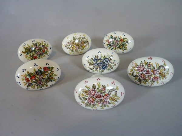 Terminal de cortinas de cerámica pintado a juego con los dibujos de las cortinas. Se pueden hacer los pómulos de cerámica para cortinas totalmente personalizados con los dibujos de las colchas… También pueden ser los terminales de cortinas de un solo color. Consúltenos »