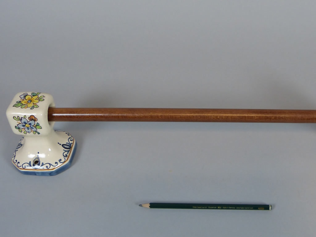 Toallero de cerámica de barra de madera, decorado con flores.